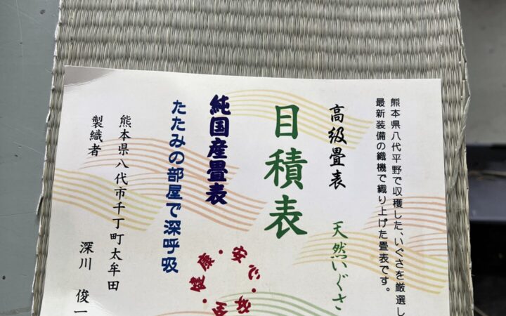 今敷いてある畳床(芯材)はそのまま利用して、表面の畳表(ゴザ)を新品に取り替える工事です。