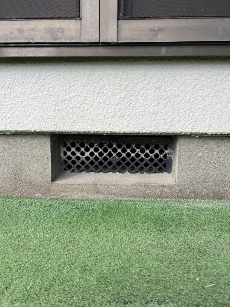 外回りを点検すると、基礎の風窓まわりも整理されており、植木鉢などで風通しを妨げるものが一切なし。長年きちんとお手入れをされてきた様子が伝わってきます。