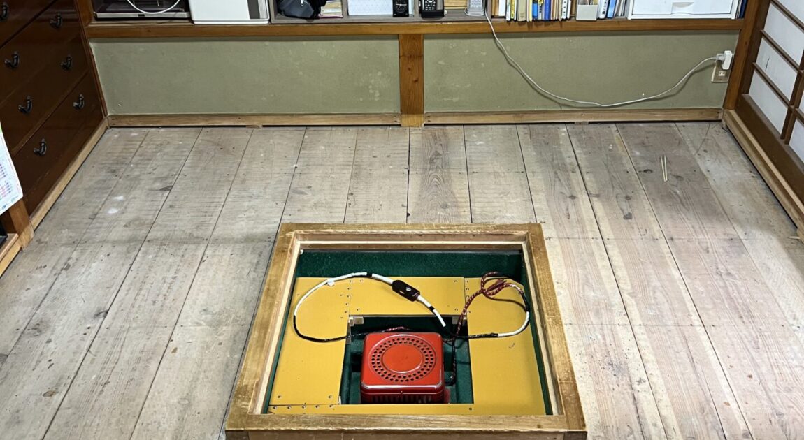 こたつの炉縁(ろぶち)に合わせて畳を製作するため、採寸は非常に繊細な作業です。
