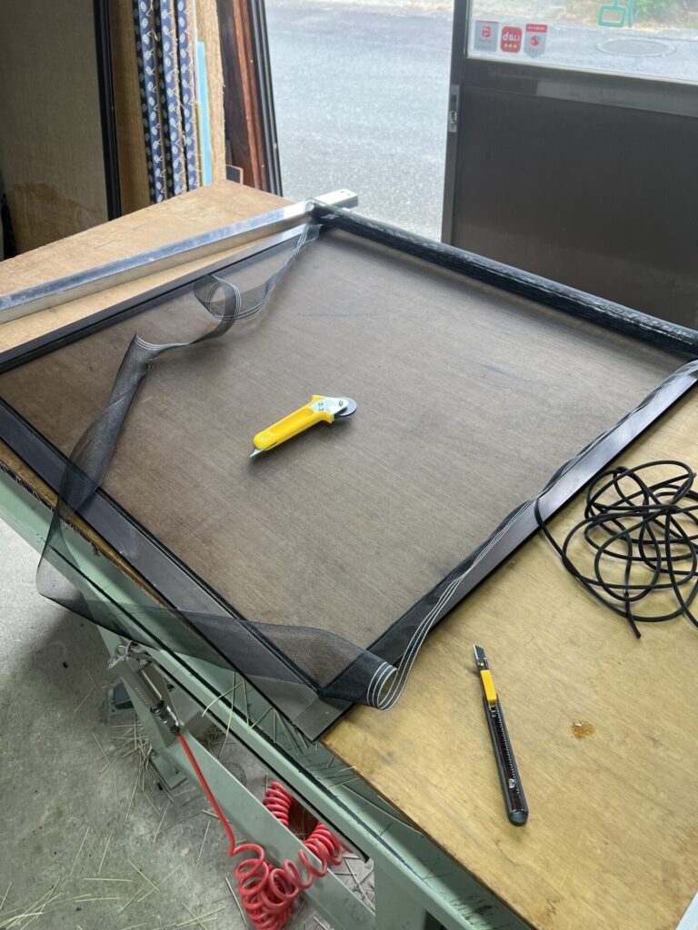 お話を伺うと、「母が生前、一部だけ張り替えてくれた網戸はまだしっかりしているけれど、古いままの部分がボロボロで…」とのことでした。