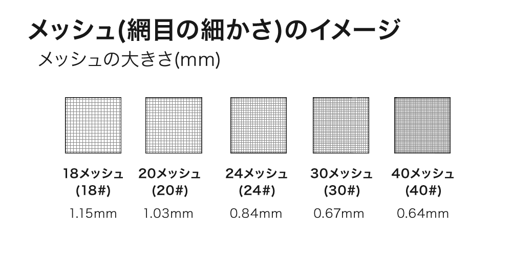 18メッシュ | 風通し抜群・昔ながらの標準タイプ | 普通 | とても良い | 通風を重視する部屋・風の抜ける窓 |