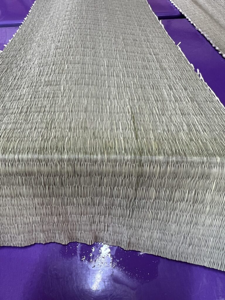 このように、折る部分のい草にしっかり水分を与え、温度と時間を調整することで、割れのないきれいな縁無畳を作ることができます。