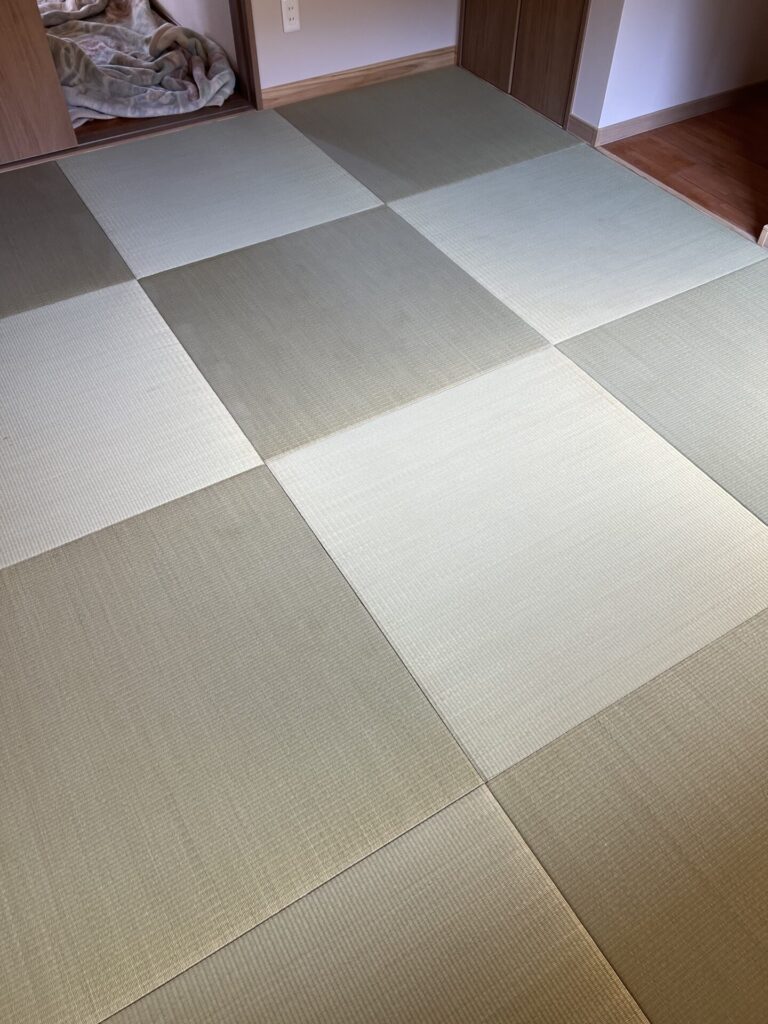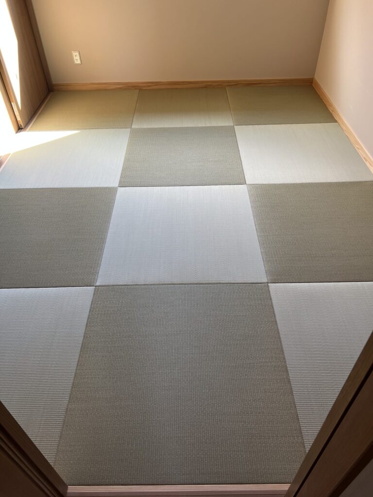 完成後の写真を見ると、畳の色が少し違って見える部分があります。