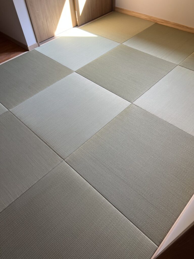 縁無畳では、この**光の陰影(市松模様)**がとても美しく、落ち着いた和室の雰囲気を作ってくれます。